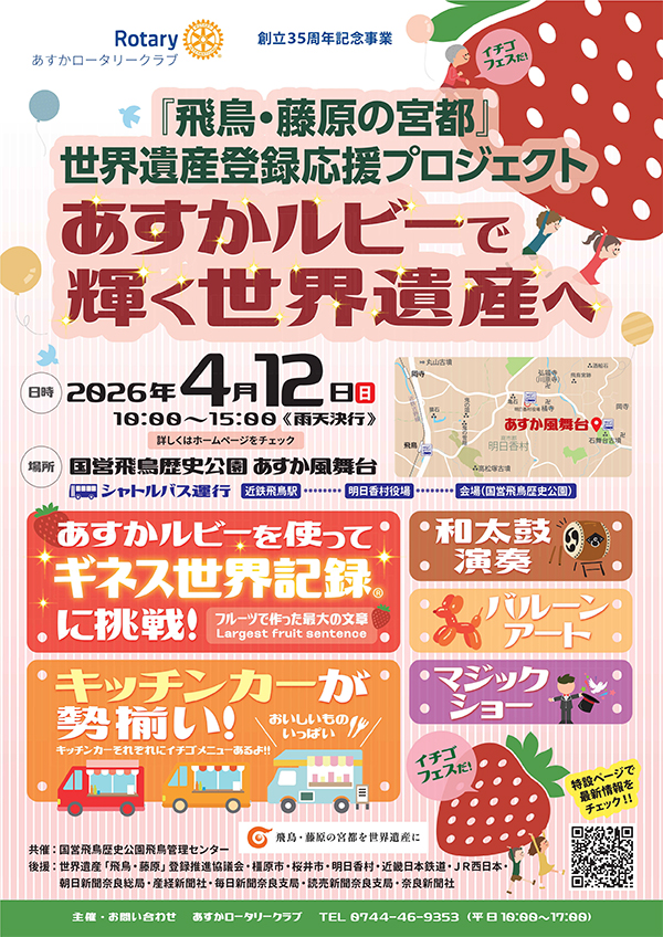「飛鳥・藤原の宮都」世界遺産登録応援プロジェクト~あすかルビーで輝く世界遺産へ~