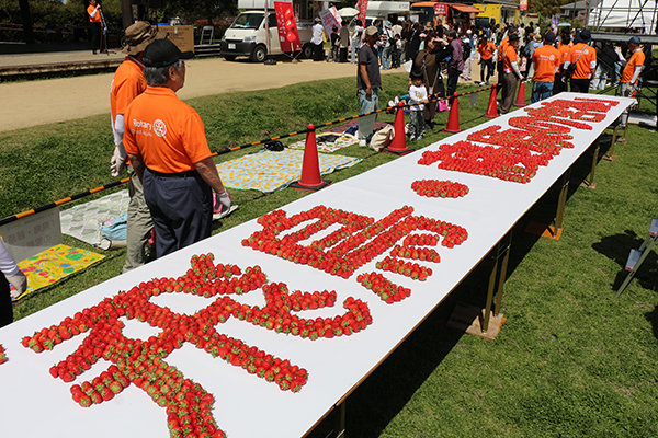 当日は、「フルーツで作った世界最大の文章」でのギネス世界記録に挑戦し、3,613個のあすかルビーで「飛鳥・藤原の宮都」の文字を完成させ、見事ギネス世界記録に認定されました。