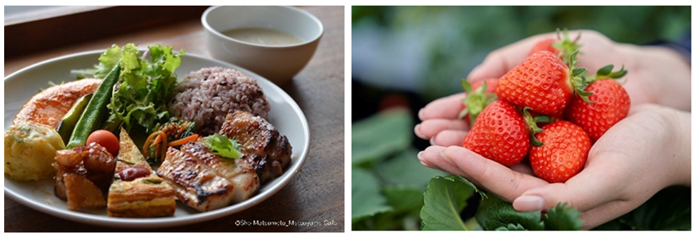 来訪者や住民が気軽に地元産品を購入できるよう、3か所の直売所を設置しています。村ではお米をはじめ、様々な野菜や果物が栽培されています。飲食店や宿泊施設の多くは、地域の農産物を使った料理を提供しています。